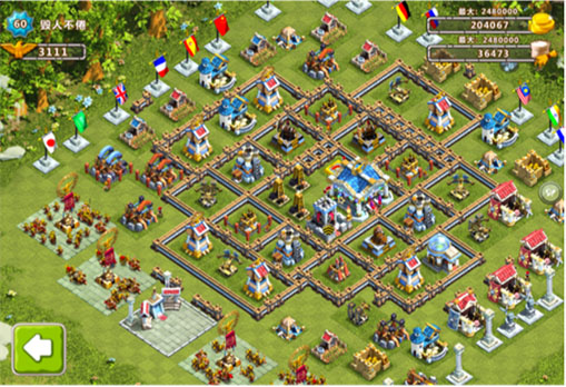 三、如何玩转“YY帝国”1.建筑:游戏中的所有建筑可通过玩家级别的提升进行构筑升级,所有建筑玩家都可任意摆放